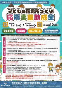 子どもの居場所づくり応援事業助成金 2025.12.15 ~ 2026.1.16