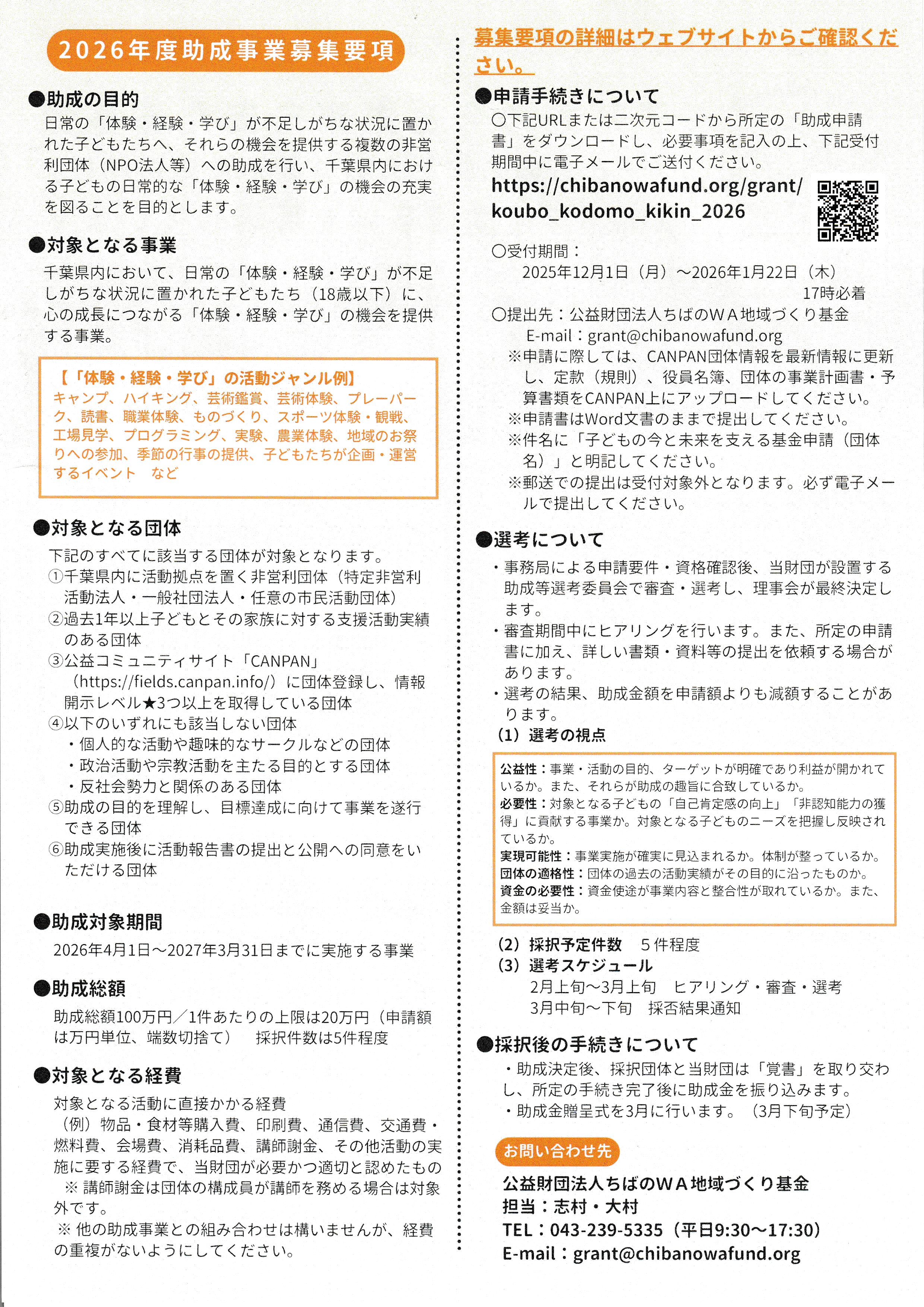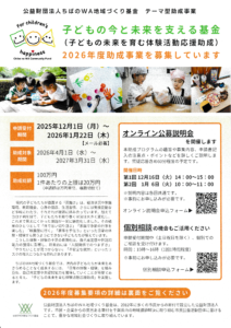子どもの居場所づくり応援事業助成金 2025.12.15 ~ 2026.1.16 応募終了
