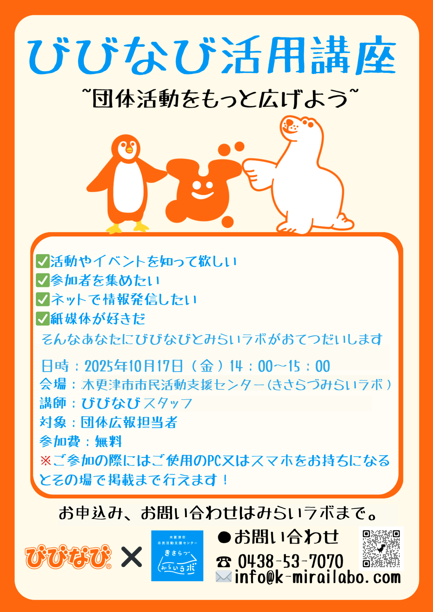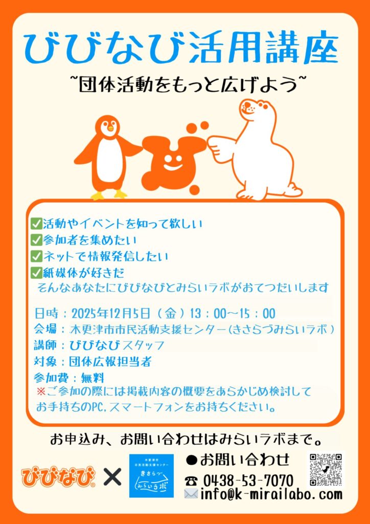 📍会場:木更津市市民活動支援センタ―(きさらづみらいラボ)第2会議室